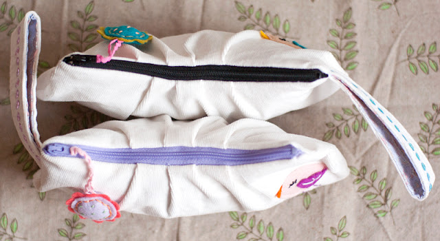 I also finished a little lot of pouches. I used the prettiest fabrics in these, all have fun lining and something pretty dangling along.